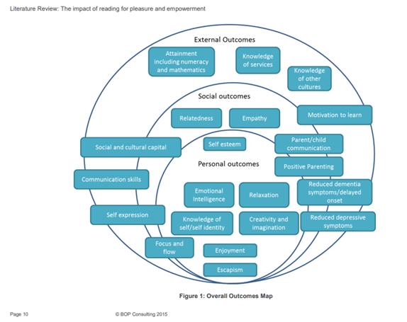 According to a literature review commissioned by The Reading Agency and conducted by BOP Consulting between March and June 2015, reading for pleasure and enjoyment provides an extensive range of positive outcomes in children, parents and adults alike.